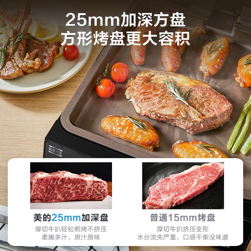 独立烤盘,上下加热、旋控调火、不沾烤盘~