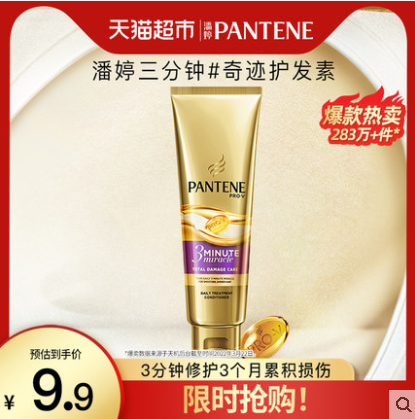 潘婷3分钟奇迹氨基酸发膜护发素修护烫染70ml×1瓶 9.9元秒杀天猫超市 推荐人: 关耳木易 发布时间:2022-04-20 15:27:55