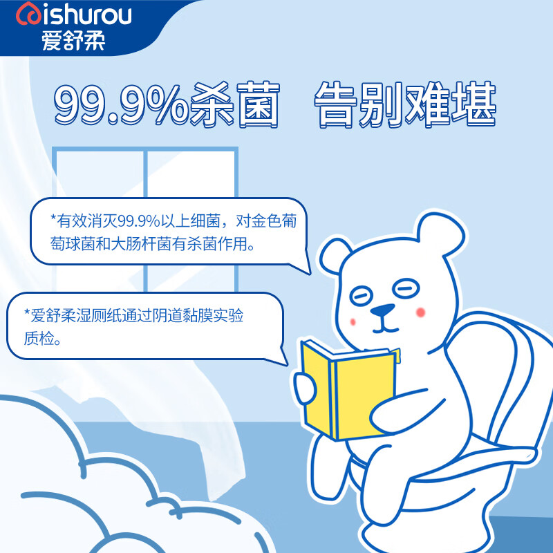 爱舒柔 天丝湿厕纸 私处清洁卫生湿巾 洁厕湿巾40片带盖抽取装 温和杀菌 私密呵护