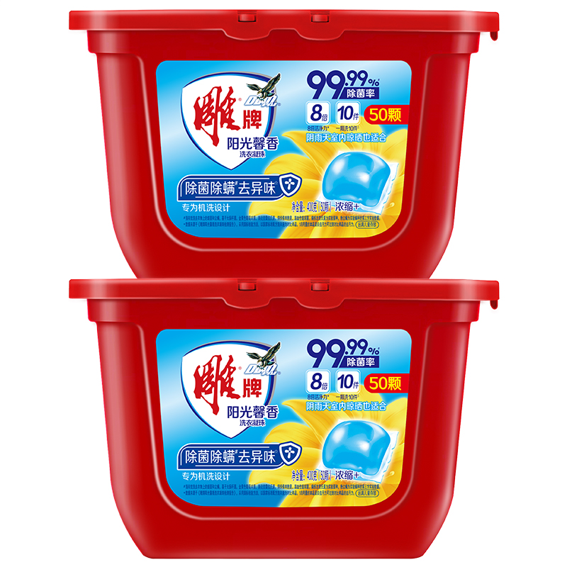 雕牌 洗衣凝珠 50颗*2盒 暖日阳光馨香 除菌99% 除螨 去除火锅异味 8倍洁净 洗衣球