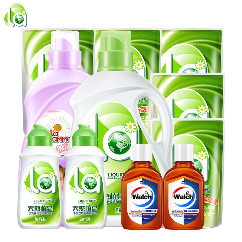 妈妈壹选 La去污清洁洗衣组合(护理剂2.1kg+皂液瓶装2kg+袋装500g*5+消毒液60ml*2+手洗90ml*2) 新旧包装转化