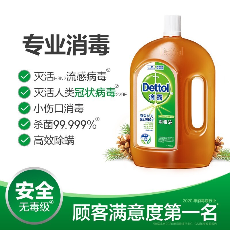 【肖战同款】滴露(Dettol)消毒液消毒水 家用杀菌除螨皮肤内衣物孕妇儿童宝宝玩具宠物环境地板 1.8L