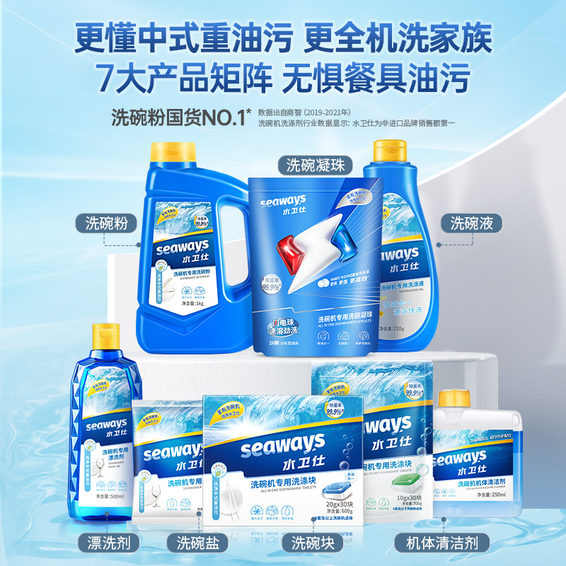 水卫仕(seaways)多效合一洗碗块 洗碗粉 大型洗碗机洗涤剂30块去油亮碟洗涤块600g 适用美的西门子方太适用