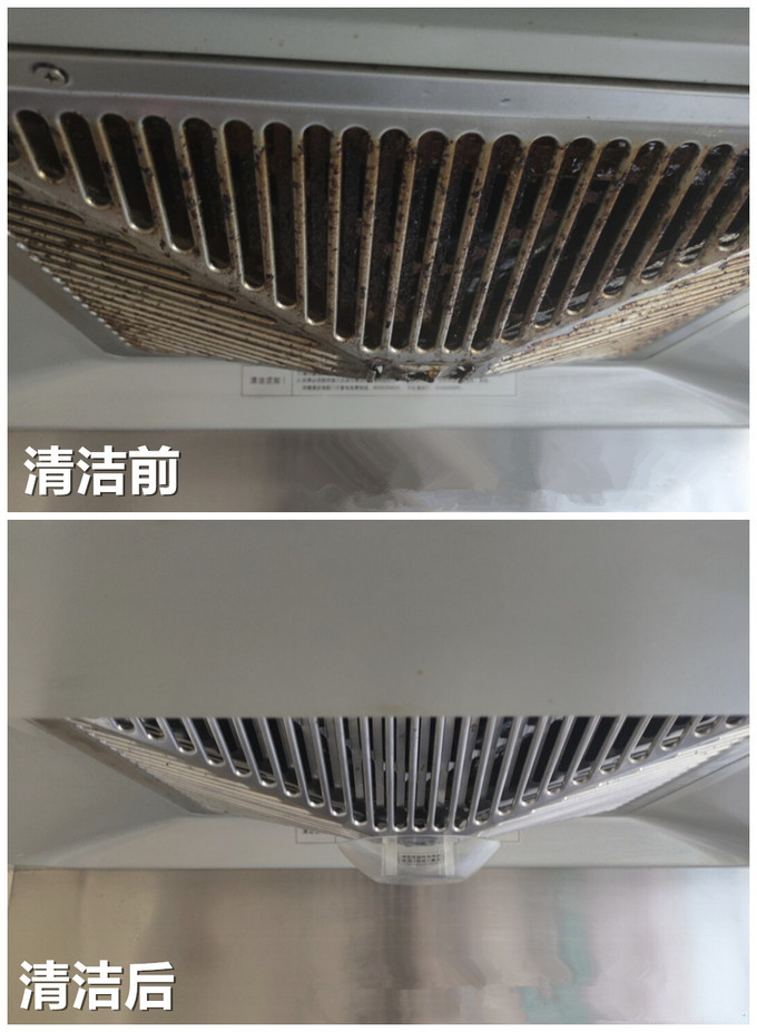 基本上喷洒后,油污都会溶解滴落,定期清洁建议多喷洒几次,如果日常每天都清洁,简单喷洒就能清除油污。油烟机干净了,整个厨房也就干净了!