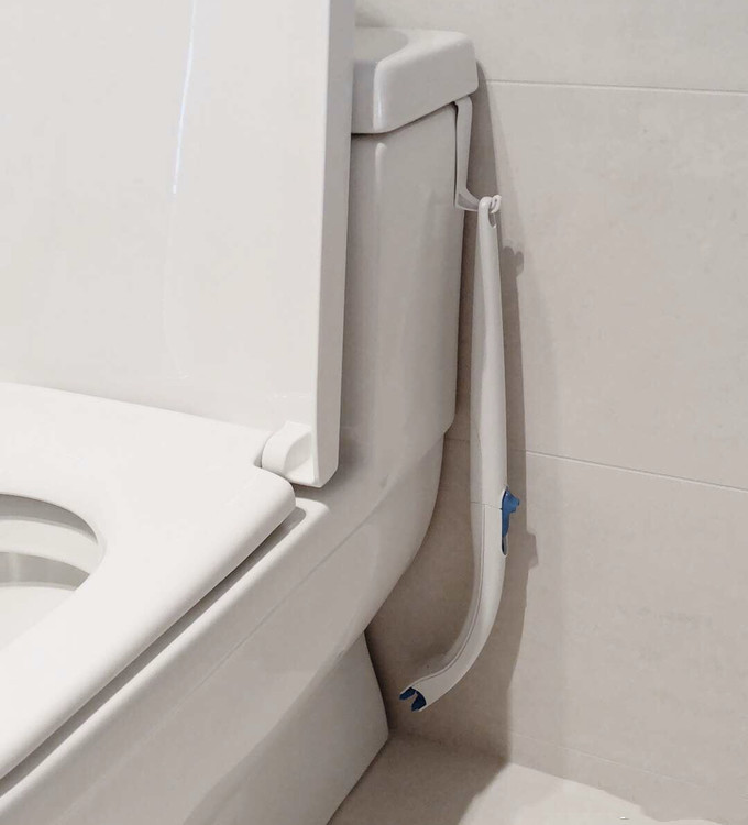 以往的马桶刷都是带底座的,拖卫生间地板的时候,都要把马桶刷挪到一边,很不方便,时间久了懒得挪动,这里就成为死角了。