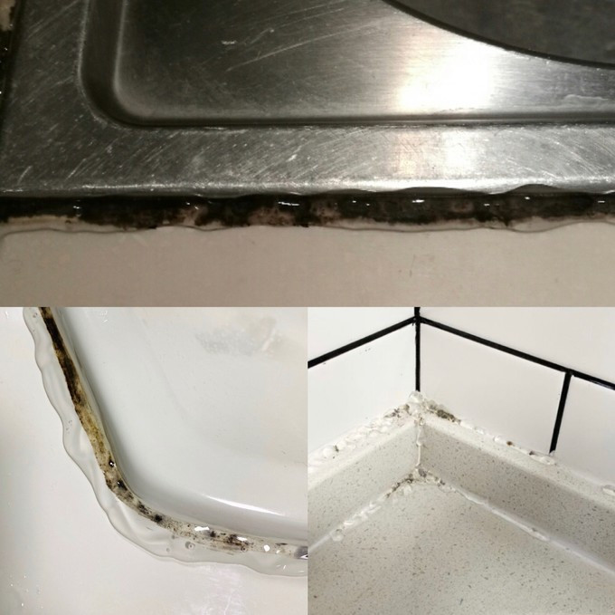 房子住久了,台面边缘发霉都是不可避免的,强行刮除一段时间又会有霉斑。我的方法是用除霉啫喱,把啫喱状挤在霉斑上,静置几个小时后,霉斑就能自动消失。
