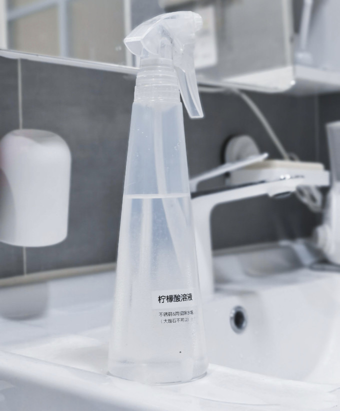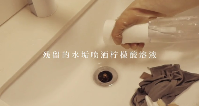 把柠檬酸溶解后装入喷壶内,针对有水垢的位置,喷洒,静置后再用鱼鳞布一点点擦干净。