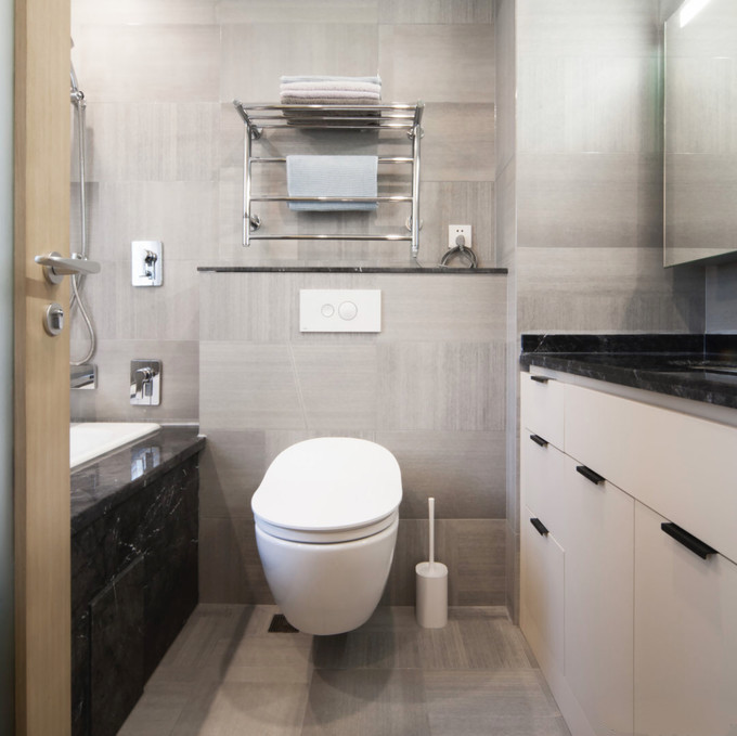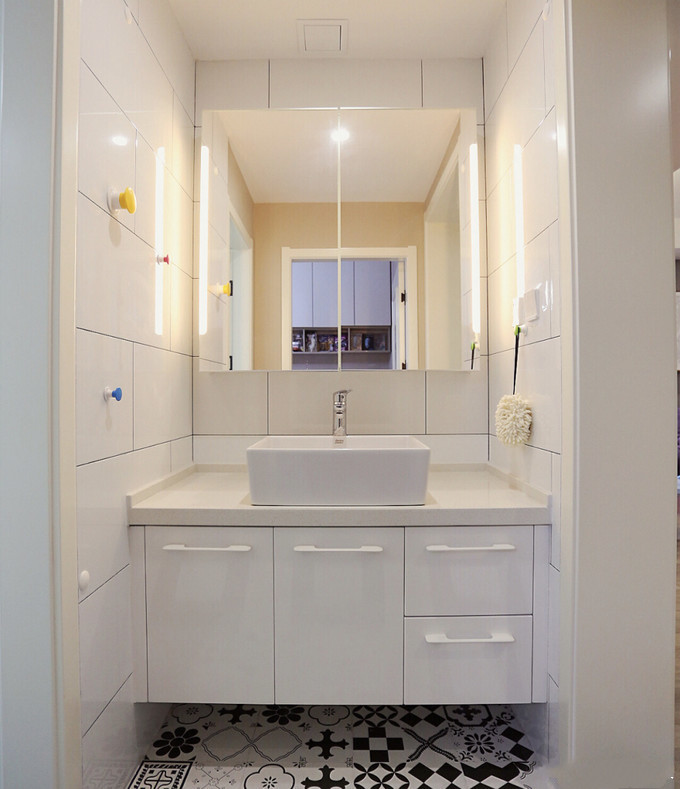 想要卫生间清洁省力,浴室柜底部一定要做悬空,并且要至少悬空30厘米左右。这样扫把、拖把都能放进去做清洁,平时还可以放个脸盆,电子秤之类的。