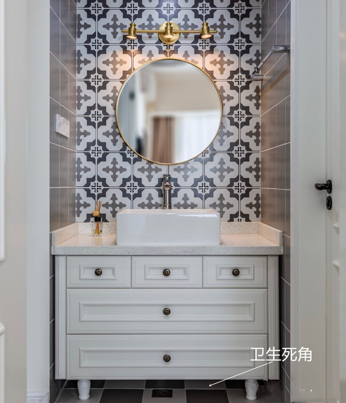 这样的浴室柜,入住一两年后,柜底下就会掉落很多杂物,每次用扫把掏,都要侧脸贴地扒拉很久。