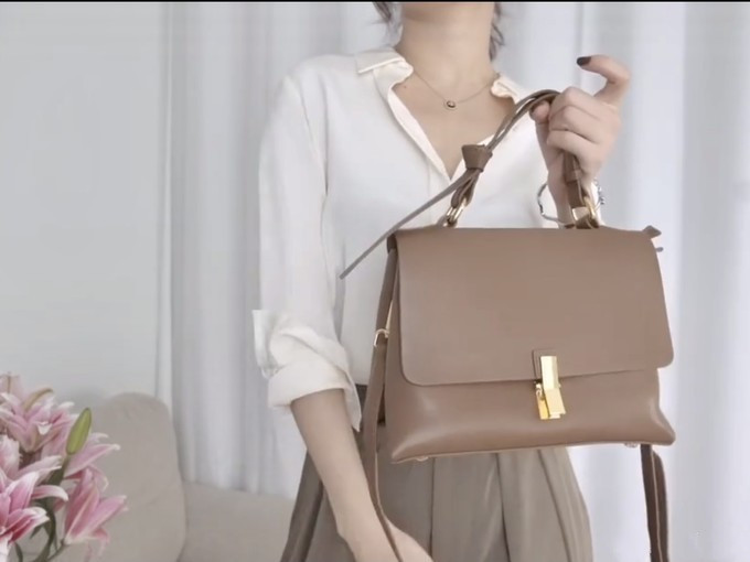 第一款,推荐这一款棕色通勤包(323软妹币),它可以和所有的通勤服装搭配在一起呢都没有违和感。它的容量也是比较大的,它的皮属于比较软一点点的材质,它也是那种比较油亮感的这种皮平面,这一款颜色也非常适合秋冬季节,当然,我觉得夏天拎也完全没有问题。而且这款包包的自重非常的轻,背一天也不会累。