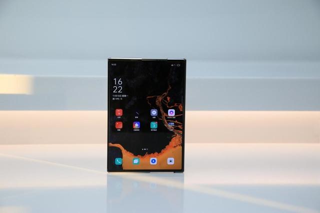 2020年11月17日的OPPO未来科技大会2020上,OPPO推出了卷轴屏概念机。这款概念机的屏幕可以像画卷一样伸展开来,最大尺寸是7.4英寸,最小尺寸是6.7英寸,同时实现了几乎“零折痕”的屏幕效果。