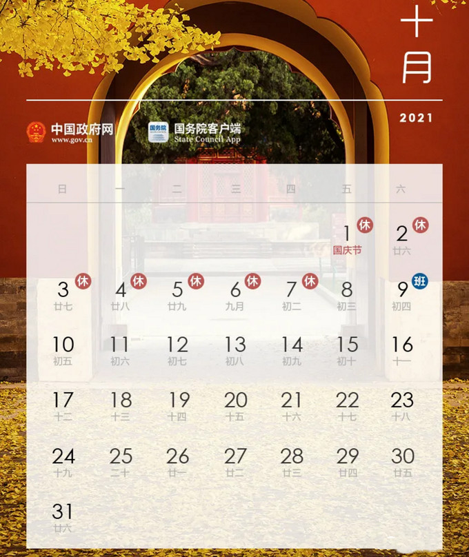十一是2021年最后一个大长假简单的在节后请两天假就能得到十天长假是个比较经济的请假策略。当然你也可以节前请5天假。