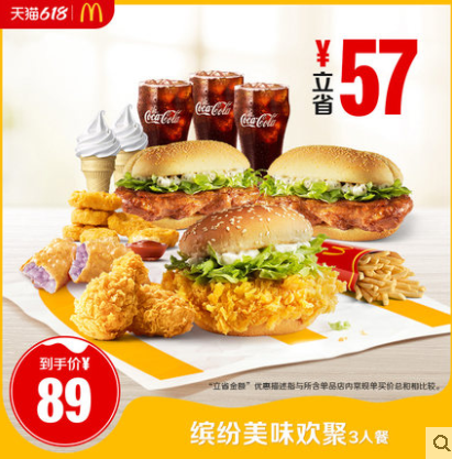 麦当劳 缤纷美味欢聚3人餐 单次券 电子优惠券代金券
