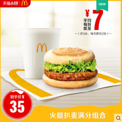 麦当劳 早餐火腿扒麦满分组合 5次券 电子优惠券