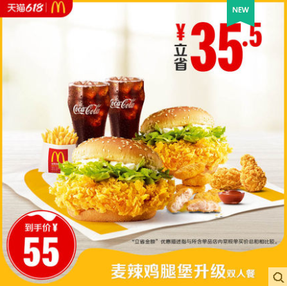 麦当劳 麦辣鸡腿堡升级双人餐 单次券电子优惠券