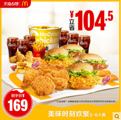 麦当劳 美味时刻欢聚5-6人餐 单次券 电子优惠券代金券
