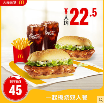 麦当劳 一起板烧鸡腿堡双人套餐 单次券 电子优惠券
