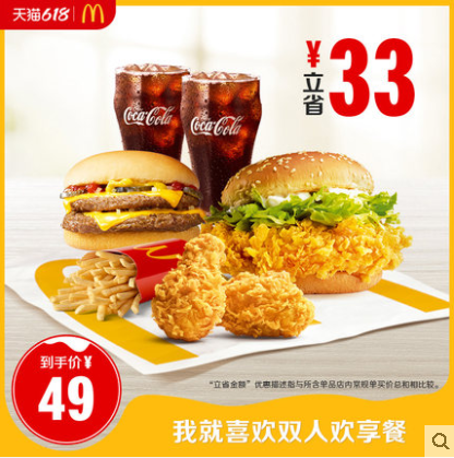 麦当劳 我就喜欢 双人欢享餐 电子优惠券代金券