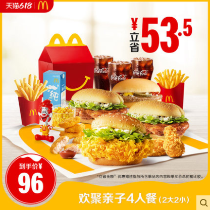 麦当劳 欢聚亲子4人餐 (2大2小)单次券 电子优惠券