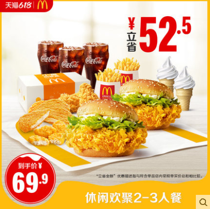 麦当劳 休闲欢聚2-3人餐 单次券 电子优惠券