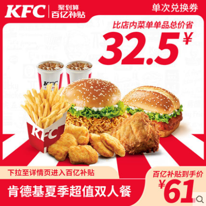【百亿补贴】电子券码 肯德基 夏季超值双人餐兑换券