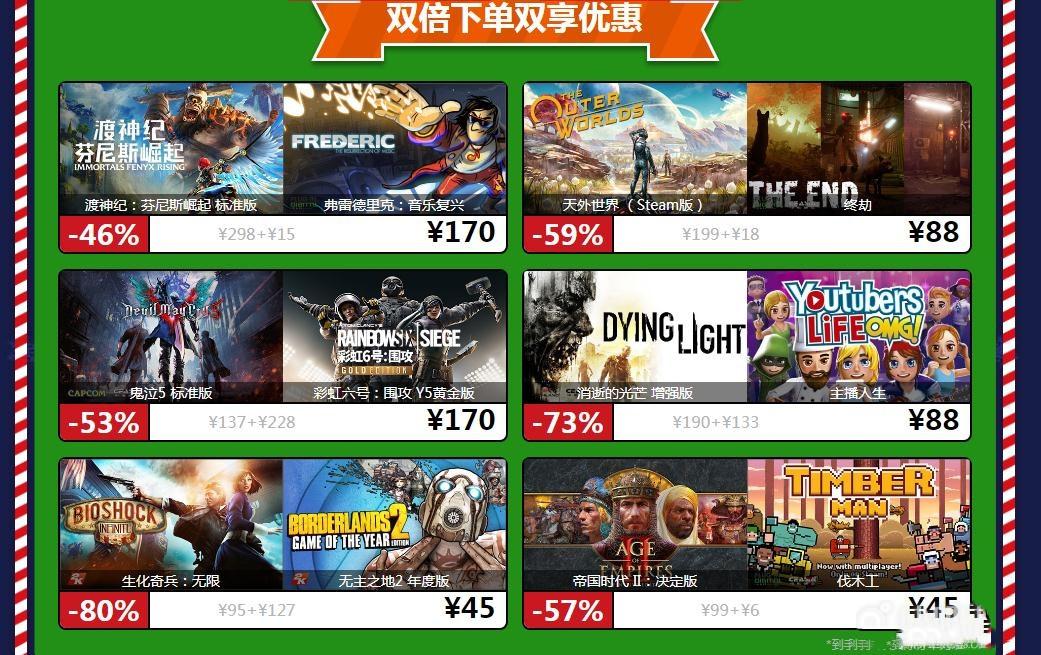 同时杉果平台还开放了一批常驻的著名游戏池,在这里玩家随时都可以在活动时间内购买促销优惠版游戏。还有双游戏双倍优惠池供玩家同时获得两份自己喜欢的游戏。