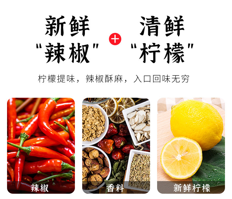 打开酸辣脱骨鸡爪的真空包装,迎面扑鼻而来的香味让我顿时口水直流,听从商家建议冷藏三个小时,打开没有油腻的味道,反而有中淡淡的香味,吃起来的感觉更加香甜,感觉很值。《特别提醒,不要加热哦不然会后悔》我买了酸辣柠檬味和酸辣味两种,酸辣柠檬味,酸味适中,适合爱吃酸辣的朋友们。北方的朋友建议买此款哦,酸辣味,偏辣,爱吃辣的可以品尝一下,南方的朋友建议品尝此款。综合评价相对来说酸辣柠檬味更好吃一点。