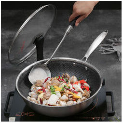 这种蜂窝煤的不粘锅实际上是在蜂窝的凹陷处设计了不沾涂层,而在凸出的部分则是不锈钢的锅体,这样既保证了不沾地特性,又很好地保护了涂层不被金属锅铲弄坏,阵主觉得还是有一定实用价值的,只是不要觉得这种锅就能永远不粘了就行,不粘锅的涂层总是会磨损的,区别只是快慢。这种蜂窝煤锅入手价格也不必超过300元,再高就变成智商税了。