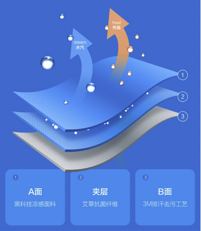 采用三明治复合结构,3MScotchgard排汗去污工艺的黑科技凉感面料、填充净爽睡眠,洁净守护每一晚。