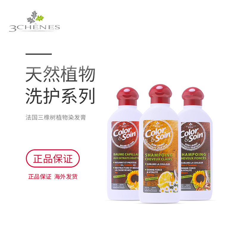 3CHENES三橡树天然植物护色染发深浅洗发水/护发素250ml 孕哺可用