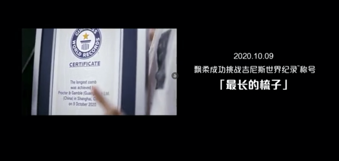 近日,飘柔发布了一支广告创意视频,竟然还意外成功挑战吉尼斯世界纪录称号:最长的梳子。
