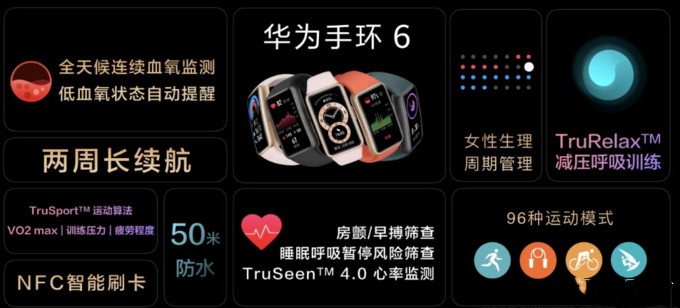 另外,新增支持全天候血氧监测,基于华为TruSeen™4.0深度优化的硬件模组以及智能节电算法,支持301医院深度合作的心脏健康研究和睡眠呼吸暂停研究。此外,华为手环6还支持压力监测、久坐提醒等,更为女性用户配备生理周期的记录与提醒。