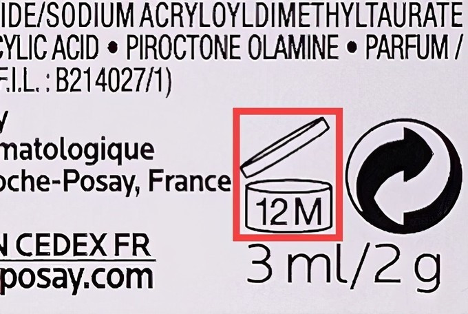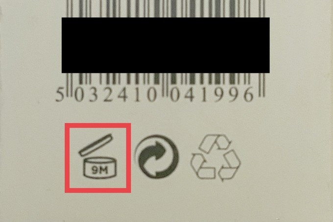 这个「打开瓶盖」的标志,指的就是开封后的保质期,而瓶身中间的数字,就是具体的时间。比如上图的「9M」(M=Month=月),代表开封后9个月内要用完,超过9个月最好就不要用了。