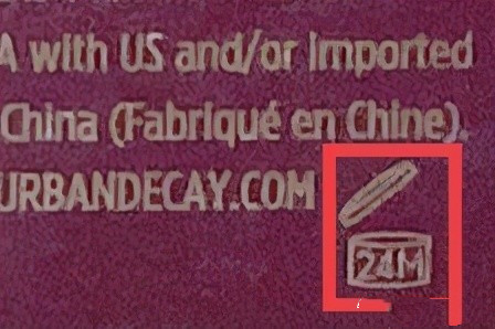 那应该看哪里呢?姐妹们,拿出你的化妆品,找一下包装上有没有下面这个标志,如果产品本身没有,那可能在外包装盒上(上下左右都看一遍)。