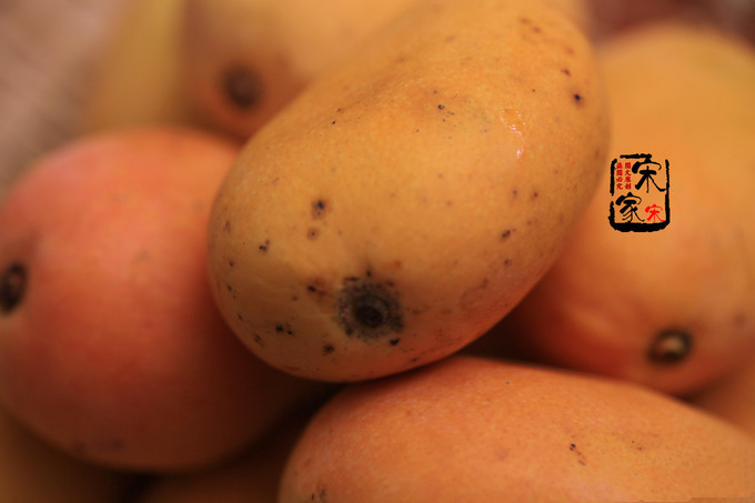 总结一下:选芒果的时候不要乱捏,一捏就坏了,要先看后闻,看皮相好不好,是不是金黄色透着红,再闻一下是不是果香浓郁,没有涩味儿散发出来。不香的不熟,表皮有黑斑的口感更甜(如下图)。