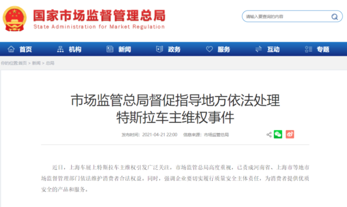 4月21日晚间,国家市场监管总局网站发布消息称,已责成河南省、上海市等地市场监督管理部门依法维护消费者合法权益。当晚,中国消费者协会指出,尊重消费者是企业经营的首要前提。希望涉事企业积极配合调查,主动提供数据和资料,妥善处理消费纠纷,切实保护消费者合法权益。