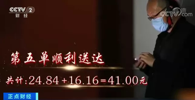 但接单后,却遭遇了“离送餐时间还有14分钟,但导航显示还有24分钟才能到”、送餐电动车被夹在机动车之间难以前行等种种难题,最终在12小时时间里竭尽全力也只完成5单送餐,赚了41元。