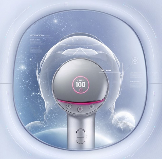 据了解,这款吹风机是业界首台LCD高速吹风机,独特的航天外观设计,突破采用智能LCD数码面板,可以精准把握风力,其银白色的机身喷涂借鉴了未来空间站,精确数字面板灵感则源自宇航员面罩,整体设计充满科技感,凸显高端品质。