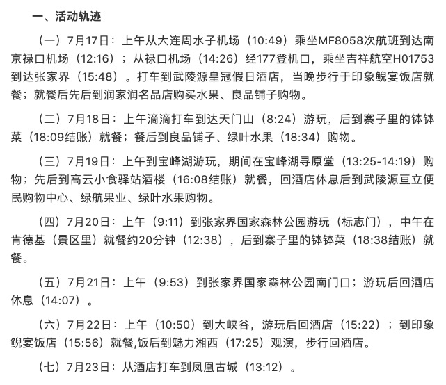7月27日,掌上张家界发布消息,大连在对涉南京人员排查核酸检测中,发现3名新冠肺炎核酸检测阳性人员,核查发现其7月17日-23日期间在张家界有活动轨迹,具体如下: