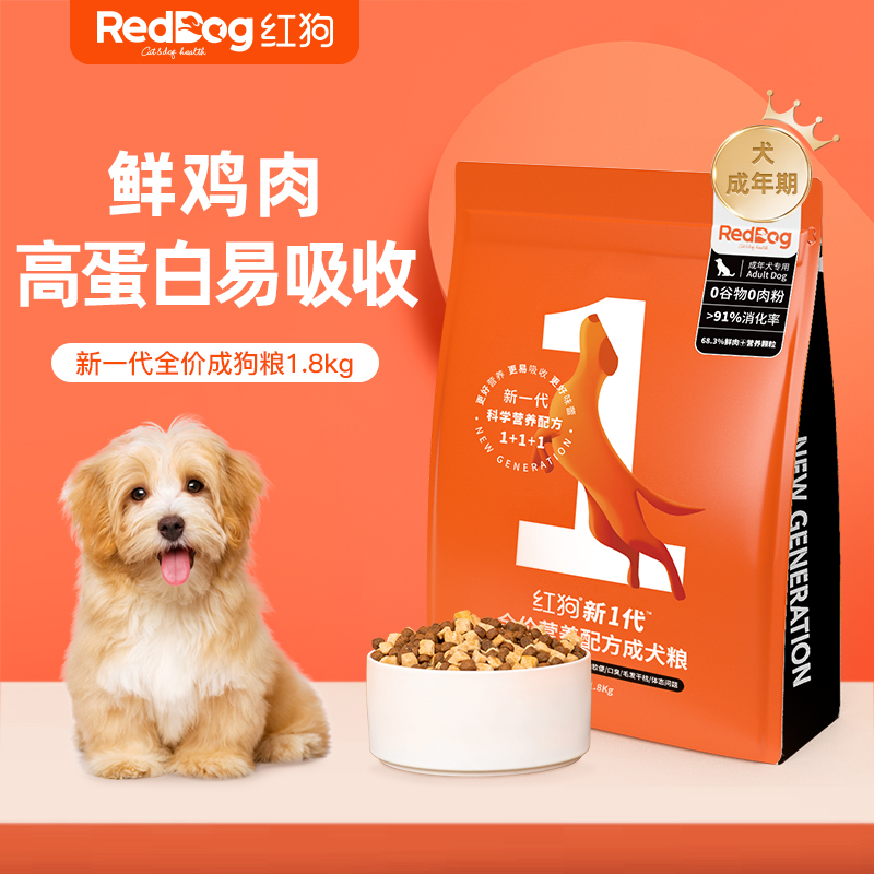 红狗RedDog 成狗粮1.8kg 新1代全价营养配方粮 营养成犬狗粮鲜鸡肉营养因子营养颗粒 鸡肉配方