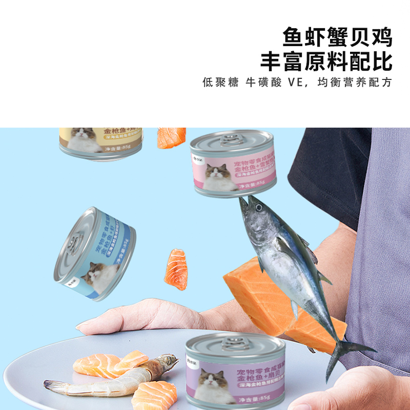 京萌【京东自有品牌】猫零食猫罐头 混合装 85g*24 猫条成猫湿粮主食罐深海鱼无谷原切整肉营养补水发腮