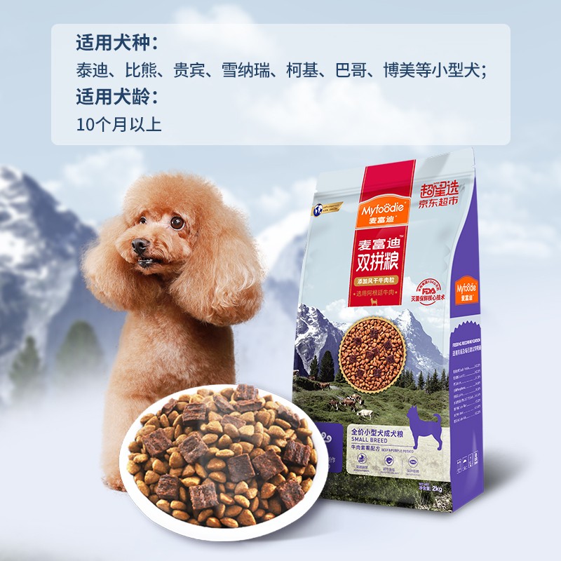 麦富迪狗粮 风干牛肉双拼粮2kg 成犬小型犬(肠胃管理)泰迪比熊博美