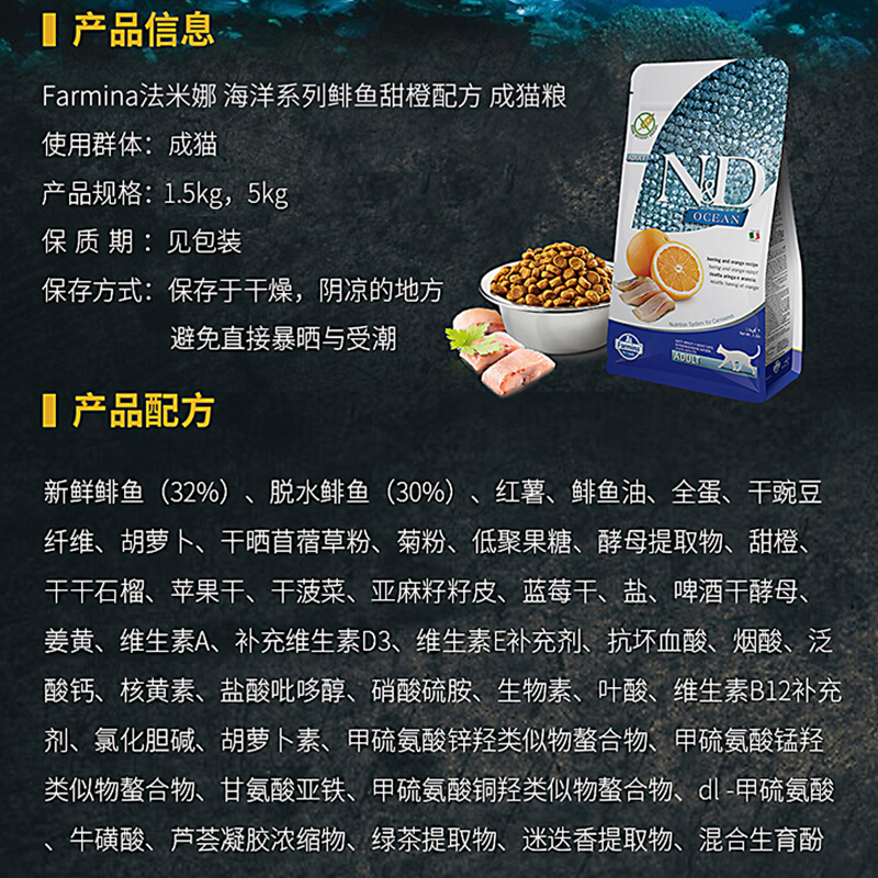 法米娜farmina猫粮法明娜猫粮 无谷猫主粮意大利进口成猫幼猫猫粮 鲱鱼甜橙成猫粮1.5kg