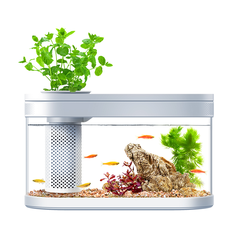 画法几何 桌面生态懒人鱼缸 C180基础款 上过滤带灯底砂棉 支持一键换水USB供电长29cm长 家用小金鱼缸水族箱