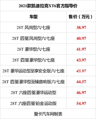 新美式大型SUV——凯迪拉克XT6,共推出5款车型,提供5种车身颜色和4种内饰颜色选择。